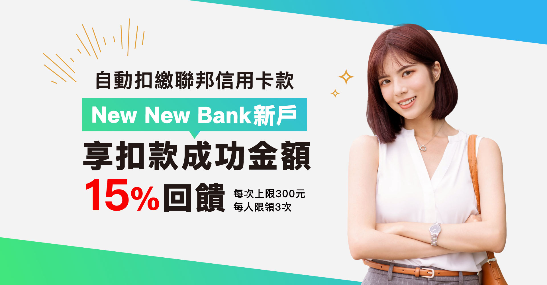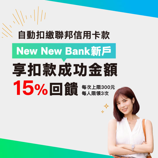 自動扣繳成功依據本行通知之金額及期限,限持卡人於付款期限內,綁定持卡人本人之New