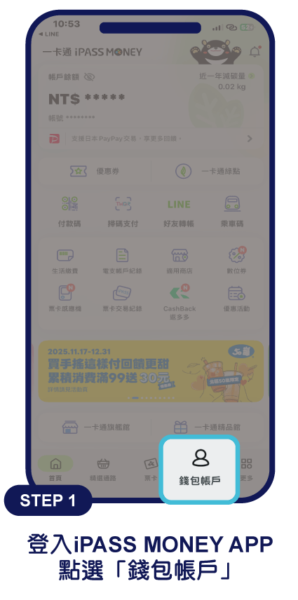 MONEY註冊、交易、查詢消費紀錄問題或本活動相關問題,請洽iPASS